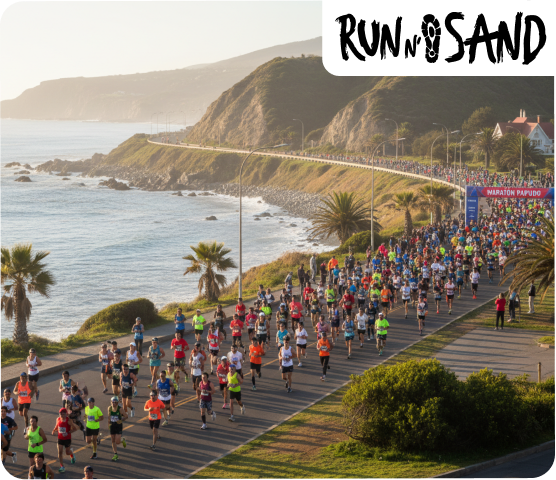 Participa en un circuito sobre la arena y celebra tu meta con una medalla creada a partir de mallas ostioneras recicladas, resultado de limpiezas costeras que recuperan nuestro borde marino.